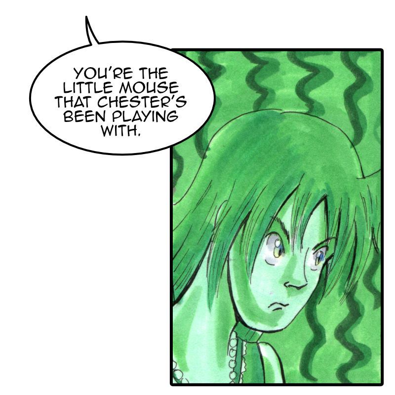 Sherry (off panel): You're the little mouse that Chester's been playing with.