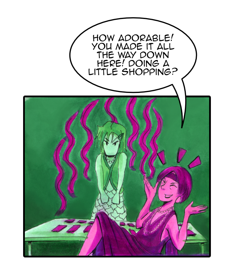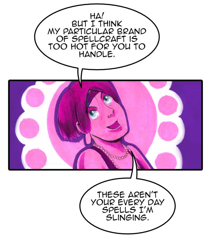 Sherry: "Ha! But I think my particular brand a spellcraft is too hot for you to handle. These aren't your every day spells I'm slinging."